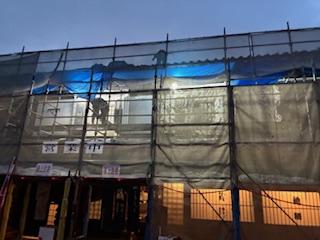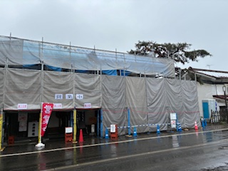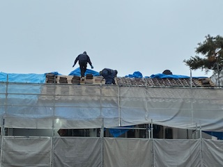 急ピッチで屋根の修理、白壁の修理が行われています。